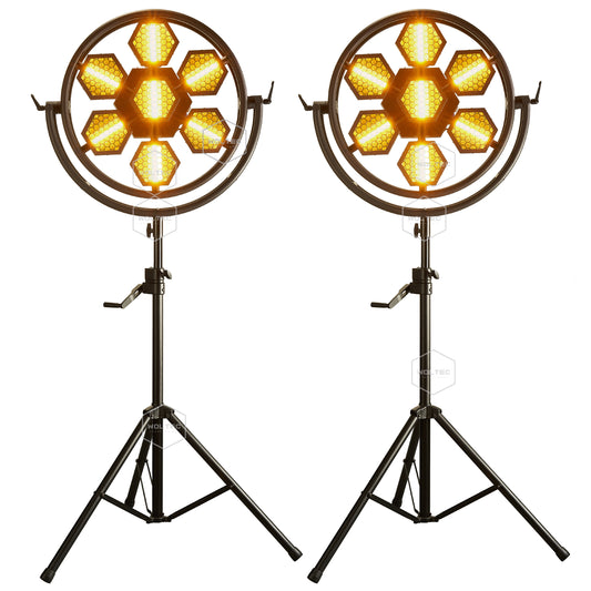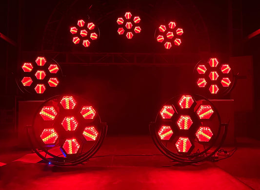 2-Pack Woltec R7 PXL Hexagon Stage Light + 2 Heavey Duty Stands Background Effect Retro Blinder Lamp 7x 60W LED filament and RGB Stage Dj Disco Lamp Pixel Strobe Matrix Vintage Luminaire